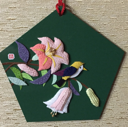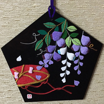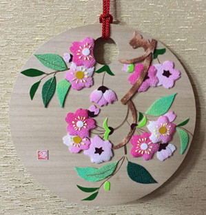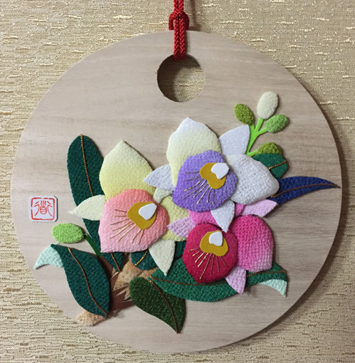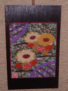 | 福寿草 縮緬モザイク (平成20年1月) | 一家繁栄 裏桜と扇 (平成20年1月) |