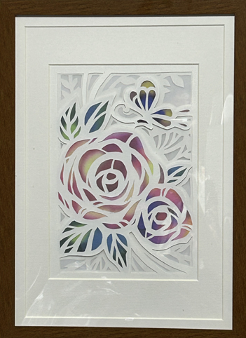 | 白切り絵かさね Angelfish (令和6年8月) | 白切り絵かさね 薔薇と蝶 (令和6年8月) |