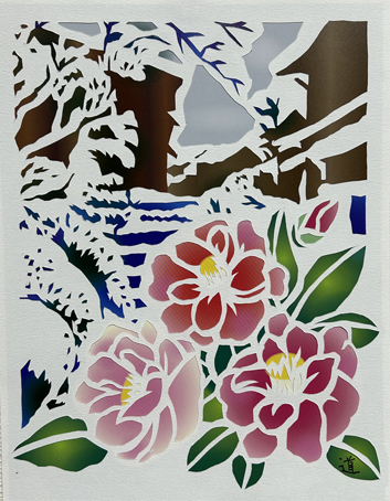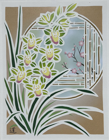 | 切り絵 山茶花 (令和6年10月) | 切り絵 cymbidium (令和6年11月) |