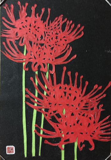 | 切り絵 彼岸花 (平成28年7月) | 切り絵 姫コスモス (平成28年8月) |