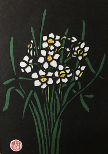| 切り絵 秋桜 (令和6年9月) | 切り絵 水仙 (令和6年10月) |