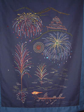 | ハーダンガー刺繍 暖簾 (平成19年11月) | 刺繍 長良川鵜飼と花火 (平成19年8月) |
